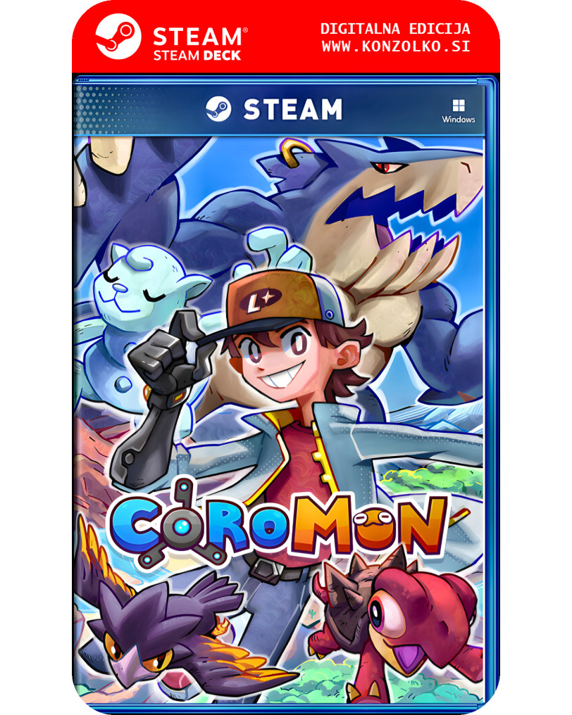 Pomembno je poudariti, da je Coromon, ki ga kupite pri nas, digitalna igra v obliki aktivacijske kode za platformo Steam. To pomeni, da ne boste prejeli fizične škatlice. Po nakupu preprosto vnesete kodo v svoj Steam račun in igra je vaša za vedno, pripravljena za prenos. Celoten postopek je hiter in enostaven, kar pomeni, da lahko z igranjem pričnete skoraj takoj. Glavna zgodba vam bo po podatkih s spletne strani HowLongToBeat vzela približno 24 ur in pol, medtem ko bodo tisti, ki želijo odkriti vse skrivnosti in ujeti vse Coromone, v igri preživeli okoli 50 ur. Igra ponuja tudi spletni večigralski način, kjer se lahko pomerite s prijatelji ali drugimi igralci po svetu. Za igranje na spletu ne potrebujete dodatne naročnine. Sistemske zahteve so zelo nizke, saj potrebujete le 1 GB RAM-a in 2 GB prostora na disku, kar pomeni, da bo igra tekoče delovala tudi na starejših računalnikih.