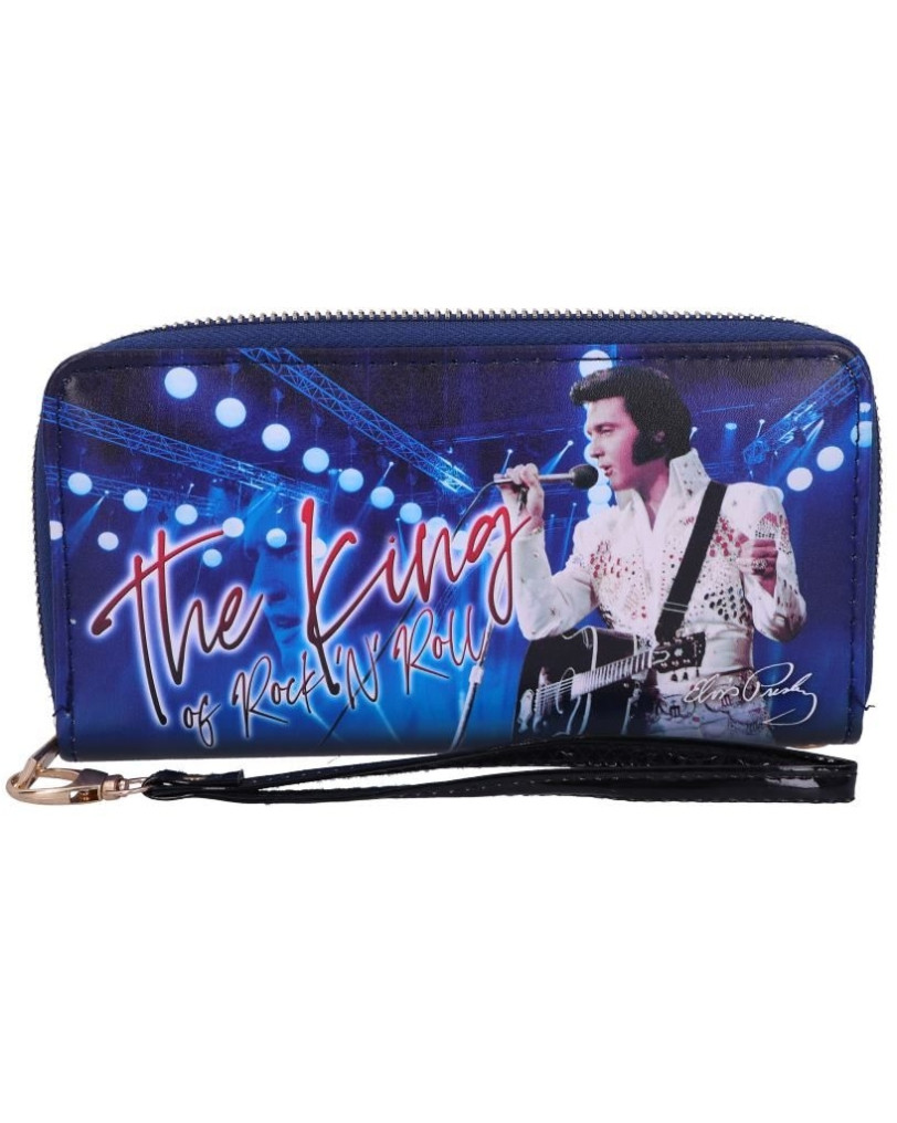 Gre za uradno licencirano denarnico Nemesis Now Elvis The King of Rock and Roll. Namenjena je seveda vsem oboževalcem legendarnega glasbenika, a hkrati služi kot popolnoma funkcionalen vsakdanji pripomoček. Izdelana je iz umetnega PU usnja, ki je na otip presenetljivo prijetno in deluje trpežno. Ko jo odpreš, te pozdravi živahna rdeča notranjost z vzorcem zvezd, kar je lep kontrast temnejši zunanjosti, na kateri kraljuje podoba Elvisa med enim od njegovih slavnih nastopov. V notranjosti je dovolj prostora za kartice, bankovce in celo nekaj kovancev v majhnem žepku.