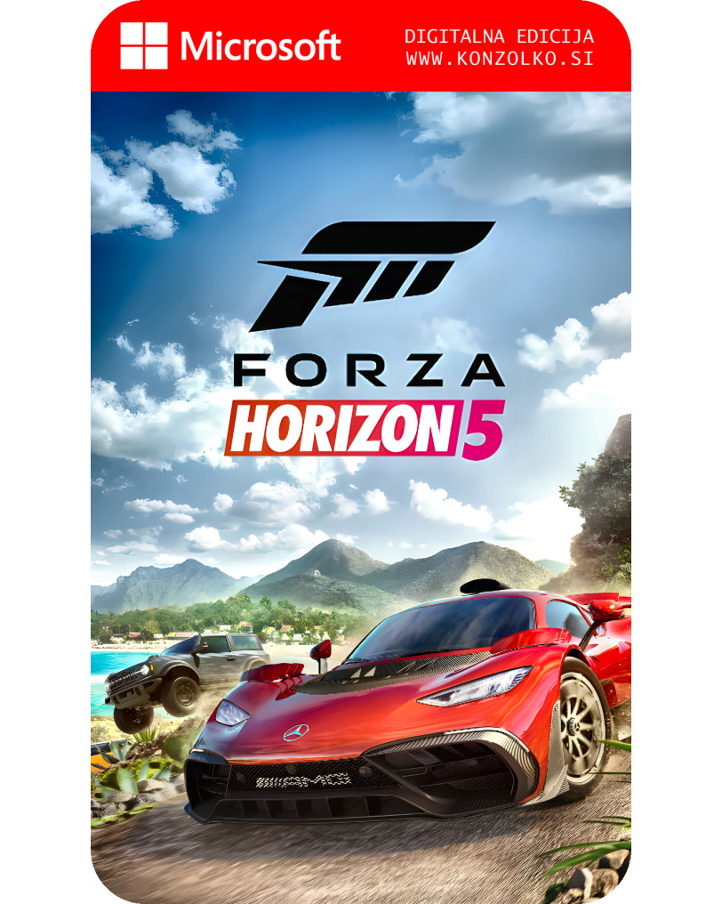 Preden se poglobimo v vsebino, je ključno pojasnilo. Forza Horizon 5 Premium Edition, ki jo kupite pri Konzolku, ni fizična škatla. Gre za digitalno kodo za aktivacijo v trgovini Microsoft Store na vašem računalniku z operacijskim sistemom Windows. To pomeni, da ne prejmete nobene embalaže, ampak le kodo. Največja prednost tega je hitrost. Pri Konzolku lahko izberete dostavo po elektronski pošti in kodo prejmete skoraj takoj, brez čakanja na poštarja. Igro preprosto aktivirate in že se lahko podate na mehiške ceste.