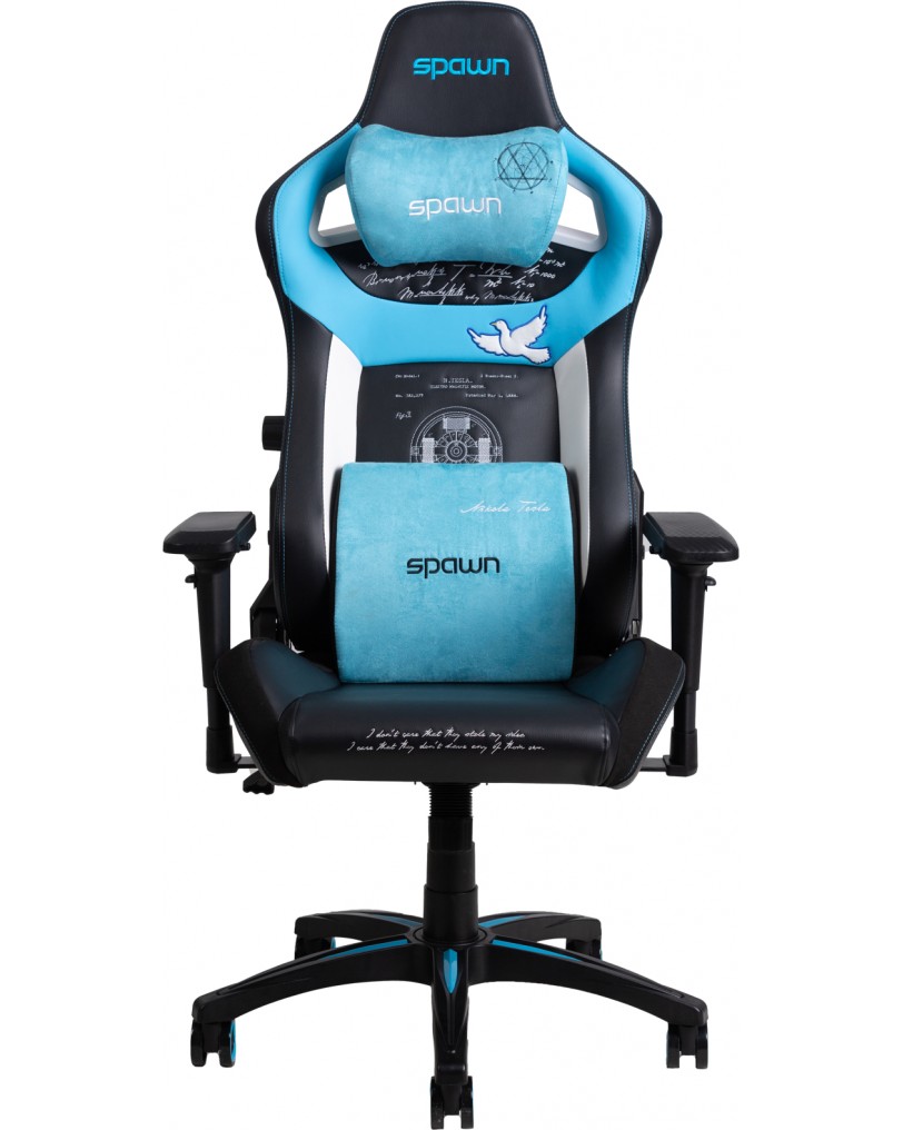 Gaming stol Spawn Tesla edition belo-modre barve