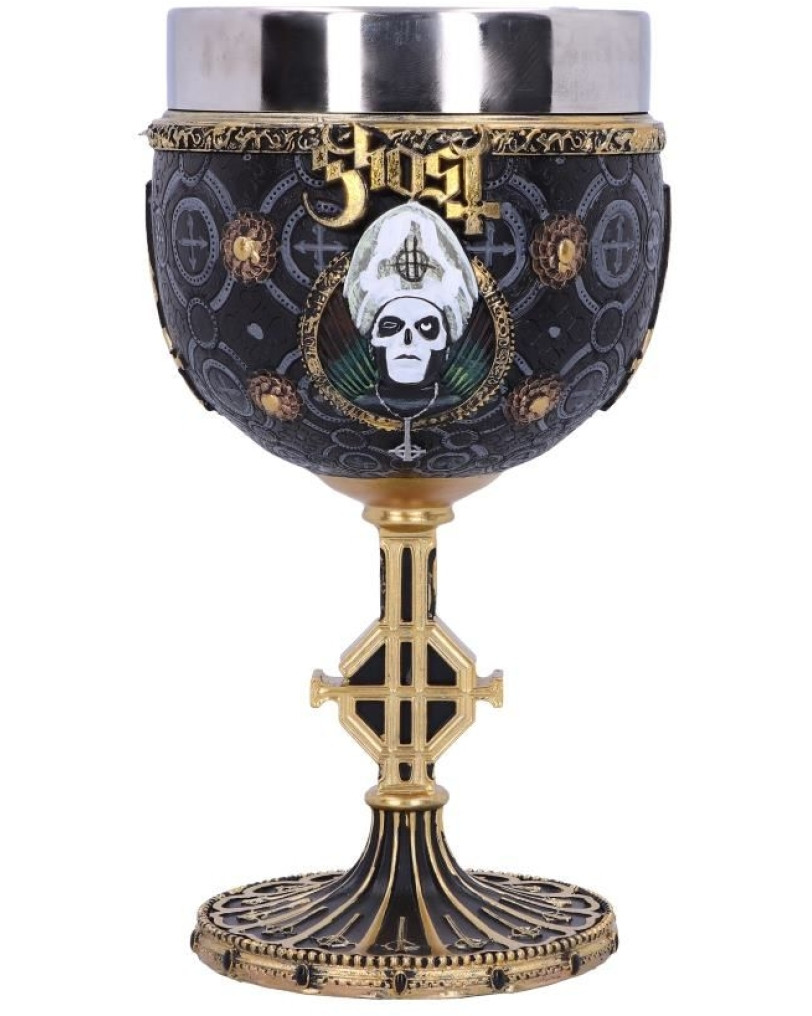 Ta kelih ni le kos posode, ampak poklon enemu najpomembnejših albumov skupine Ghost, Meliora. Zlata barva in dizajn neposredno povzemata vizualno podobo iz tistega obdobja. Za oboževalce to ni zgolj predmet, ampak delček zgodovine skupine, ki ga lahko postavijo na svojo polico. Vsak detajl, od izrazitega pogleda Papa Emeritusa do okraskov, ki obdajajo kelih, je skrbno premišljen in zvesto poustvarjen, kar mu daje avtentičnost in vrednost, ki presega zgolj materialno.