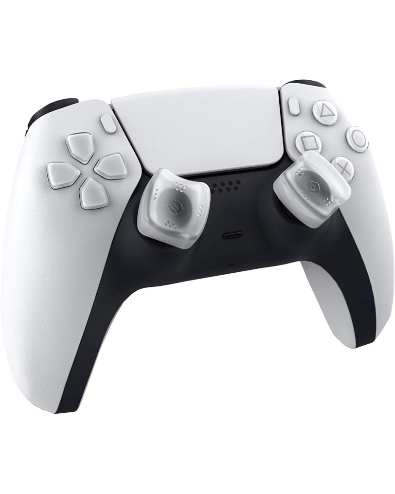 Gioteck Sniper so silikonski nastavki, zasnovani posebej za analogne paličke na PlayStation 5 kontrolerju. Njihov glavni namen je izboljšati oprijem, povečati natančnost in zmanjšati utrujenost prstov med daljšimi igralnimi sejami. Ko sem odprl preprosto embalažo, me je presenetila kakovost materiala. Gre za medicinski silikon, ki je na otip prijetno mehak, a hkrati deluje izjemno vzdržljivo in se ne prijema prahu. V paketu dobimo en par belih nastavkov, ki se estetsko lepo podajo k beli različici DualSense ploščka. Poleg PS5 so zaradi podobne velikosti gobic sicer fizično združljivi tudi s kontrolerji za PlayStation 4, a so oblikovani z mislijo na DualSense.