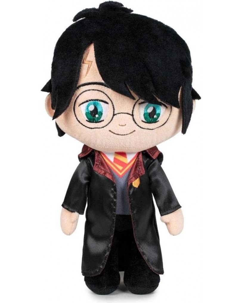 Plišasti Harry v višino meri natanko 20 centimetrov, kar je idealna velikost za postavitev na polico, mizo ali celo v avto. Izdelan je iz izjemno mehkega pliša, ki je prijeten na otip, vsi detajli, kot so oči, očala in brazgotina, pa so izvezeni, kar zagotavlja dolgo obstojnost. Nosi prepoznaven Gryfondomski šal. Igračka nima gibljivih delov ali dodatkov, saj je zasnovana kot klasična plišasta figura. Zaradi svoje zasnove lahko samostojno sedi, kar olajša postavitev. Gre za del širše kolekcije, v kateri so na voljo tudi drugi liki, kot sta Ron in Hermiona.