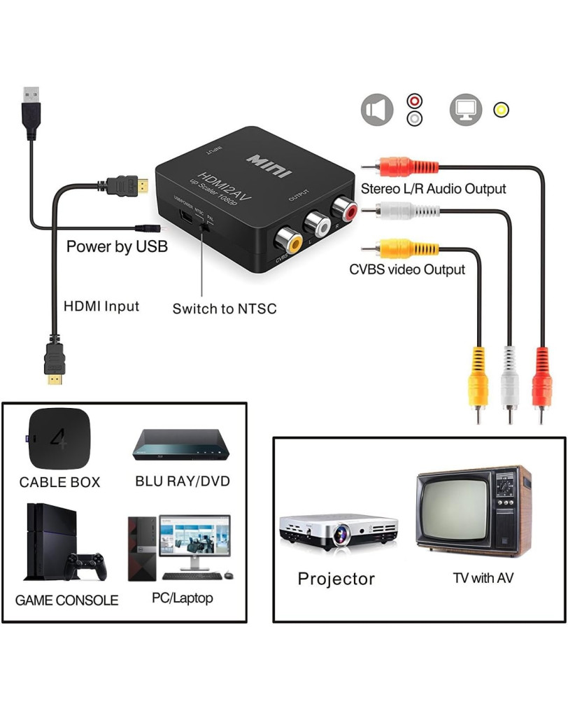 Ta majhen adapter je pravi multipraktik. Uradno podpira širok nabor naprav. Glavni vhod je seveda HDMI, izhod pa kompozitni video (CVBS) preko treh RCA priključkov. Deluje z vsemi konzolami, ki imajo HDMI izhod: PlayStation 3, PlayStation 4, Xbox 360 in Xbox One. Brez težav ga lahko uporabite tudi za priklop prenosnika, DVD predvajalnika ali katerekoli druge naprave z HDMI izhodom na starejši projektor ali televizor. Namestitev ne zahteva nobene programske opreme ali posodobitev.
