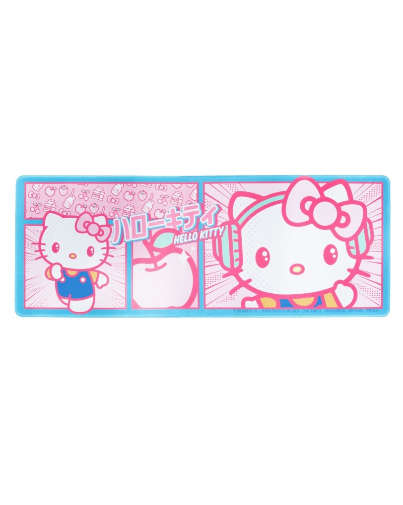 Paladone Hello Kitty Desk Mat je velika namizna podloga, ki meri kar 80 x 30 centimetrov. Namenjena je prekrivanju večjega dela mize, da lahko nanjo postavimo tako tipkovnico kot miško. Gre za uradno licenciran izdelek, kar se takoj opazi pri kakovosti tiska. Živahna roza barva in simpatičen motiv Hello Kitty takoj pritegneta pogled. Podloga je zapakirana v preprosti kartonasti škatli, iz katere jo z lahkoto vzamemo. Prvi vtis je bil presenetljivo dober – material je na otip prijeten, robovi so lepo zašiti, spodnja stran pa je gumirana in preprečuje drsenje.