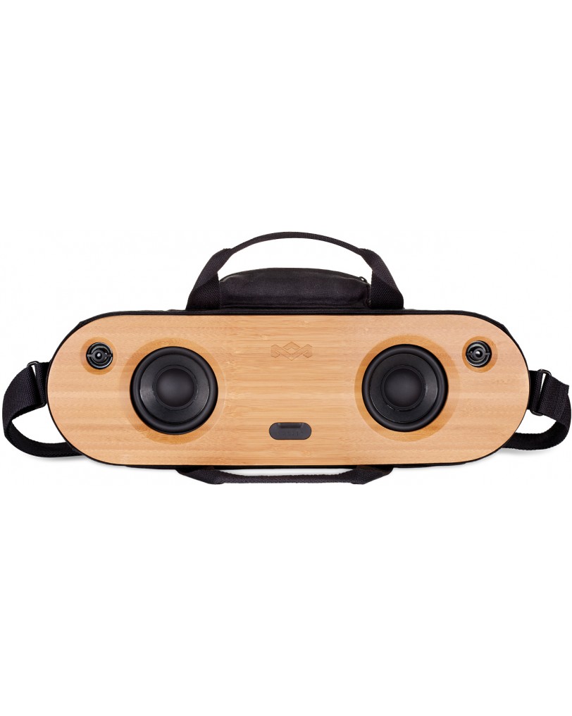 House of Marley Bag of Riddim 2 je prenosni Bluetooth zvočnik, ki takoj pritegne pozornost. Že sama embalaža, narejena iz recikliranih materialov, sporoča, da ne gre za povprečen izdelek. Ko ga vzamete iz škatle, vas pozdravi čudovita sprednja plošča iz bambusa in prepoznavna REWIND tkanina, stkana iz recikliranega bombaža, konoplje in plastenk. V kompletu dobite tudi namensko torbo za prenašanje z naramnico, kar je izjemno praktična rešitev. Prvi vtis je fantastičen – zvočnik je masiven, kakovostno izdelan in deluje kot popolno nasprotje generičnim plastičnim zvočnikom. Združljiv je praktično z vsem, kar premore Bluetooth povezavo – od pametnih telefonov z iOS ali Android sistemom do tablic in prenosnikov.