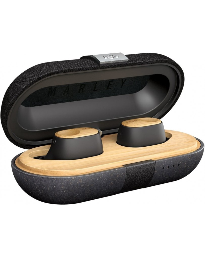 House of Marley Liberate Air so popolnoma brezžične ušesne slušalke, ki delujejo preko povezave Bluetooth 5.0. Združljive so s praktično vsemi napravami, ki podpirajo to tehnologijo, vključno z osebnimi računalniki, pametnimi telefoni (Android in iOS) ter celo novejšimi igralnimi konzolami, kot je Nintendo Switch 2, ki omogoča neposredno povezavo Bluetooth avdio naprav. Že na prvi pogled izstopajo. Polnilna škatlica je ovita v prijetno reciklirano tkanino, medtem ko so slušalke okrašene z detajli iz pravega bambusa. V roki delujejo presenetljivo lahko, a hkrati robustno. V paketu dobimo še polnilni kabel USB-C in dva dodatna para silikonskih ušesnih čepkov različnih velikosti.