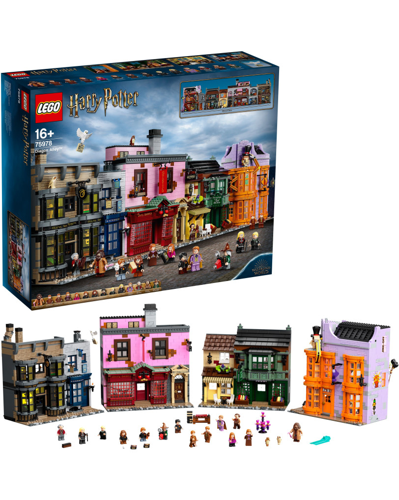 S 5544 kockami je to eden največjih LEGO setov na trgu. Končni izdelek je dolg 102 cm, visok 29 cm in globok 13 cm. Materiali so seveda klasična, visokokakovostna LEGO plastika. V kompletu je tudi 14 minifigur, med katerimi so Harry, Ron, Hermiona, Hagrid in ekskluzivne figure, kot sta Gilderoy Lockhart in Florean Fortescue. Vsaka trgovina je polna podrobnosti: od izložb, polnih izdelkov za quidditch, do notranjosti knjigarne Flourish & Blotts. LEGO ponuja standardno garancijo na vse svoje izdelke, kar pomeni, da če manjka kateri od delov, ga brezplačno pošljejo.