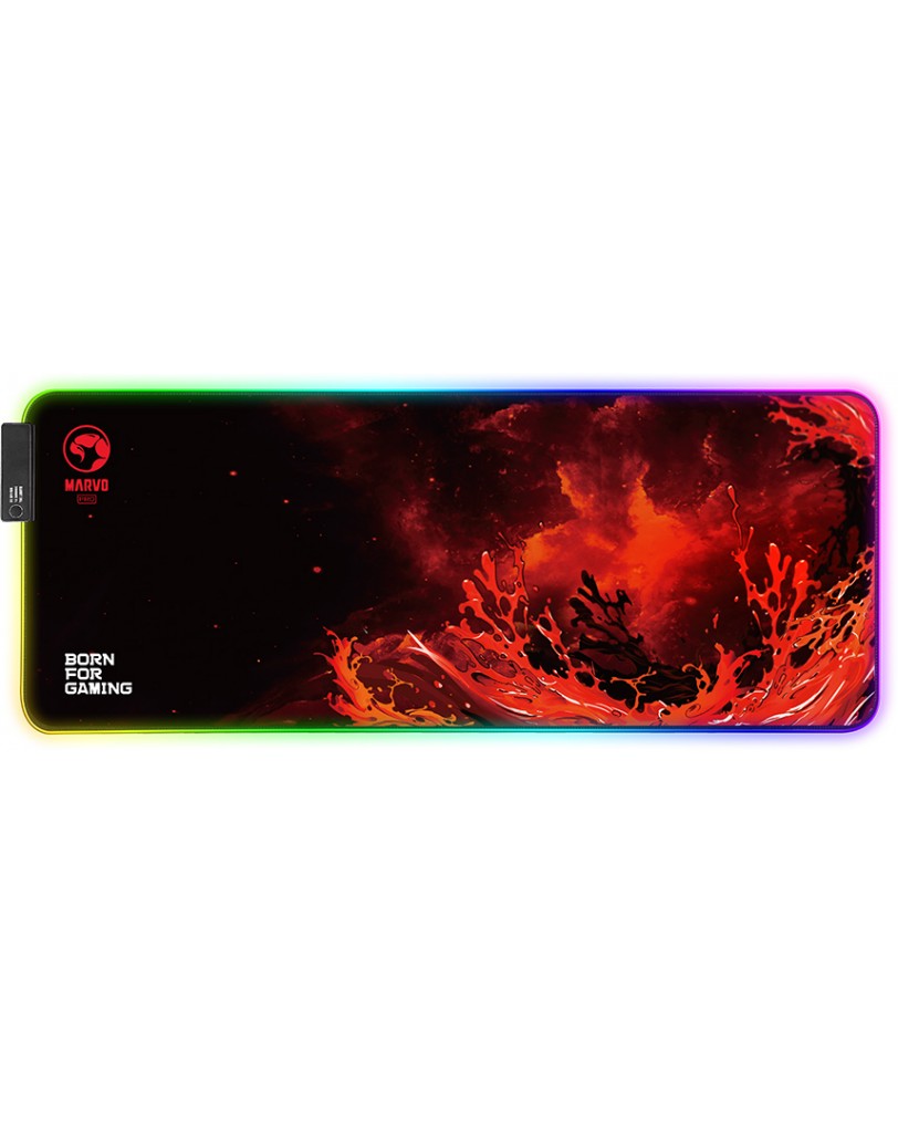 Marvo G45 je velika RGB igralna podloga za miško, zasnovana tako, da pokrije večino mize in nudi prostor tako za tipkovnico kot za miško. Ko sem jo vzel iz preproste, a funkcionalne embalaže, me je najprej presenetila njena velikost. Zares je ogromna. Površina iz mikrovlaken je na otip izjemno gladka, kar obljublja natančno sledenje. Ker se napaja preko standardnega USB priključka, je njena združljivost praktično univerzalna. Deluje na osebnem računalniku, priklopljena na PlayStation 4 ali 5, Xbox konzole in celo na priklopno postajo za Nintendo Switch ali Switch 2, kjer poskrbi za ambientalno osvetlitev.