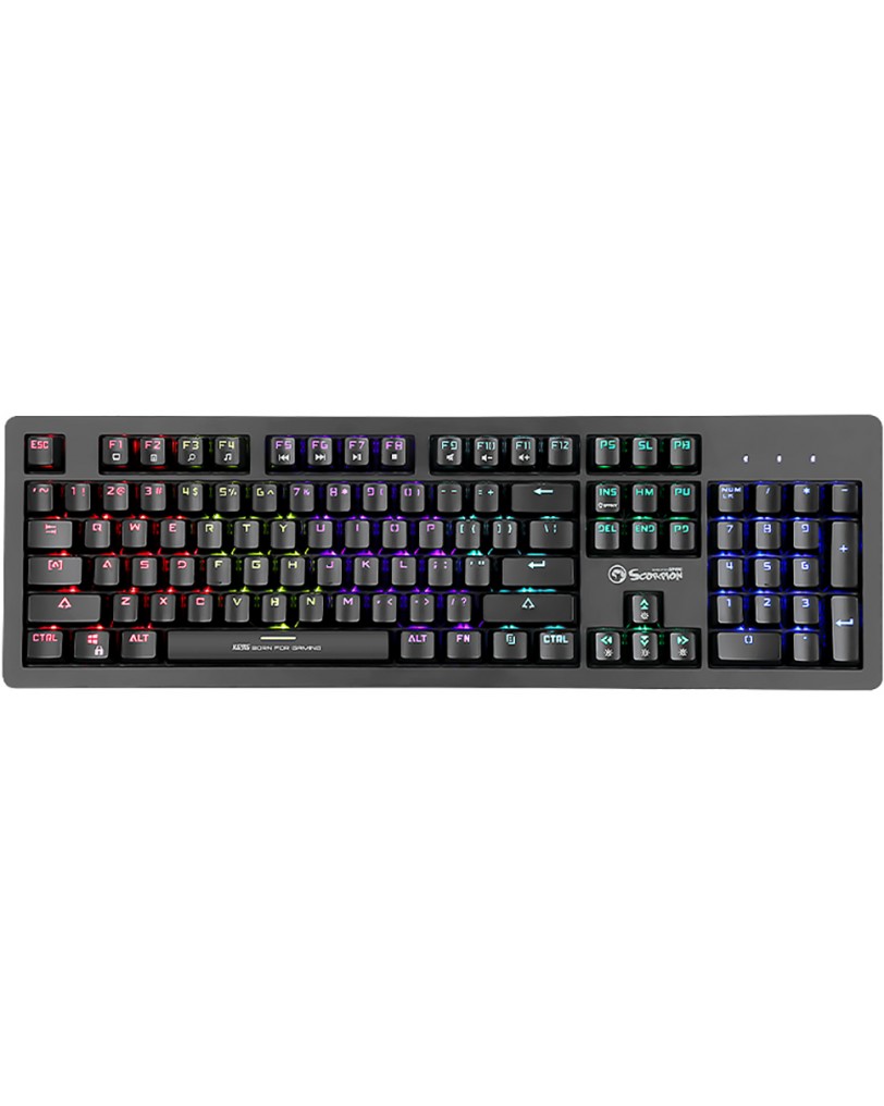 Marvo KG916 je žična mehanska tipkovnica polne velikosti, namenjena predvsem igričarjem. Na prvi pogled deluje minimalistično, a ko jo priklopite, zažari v mavričnih barvah. Osvetlitev ni polno RGB, temveč ima vsaka vrsta tipk svojo barvo, kar ustvari fiksen mavrični učinek. Kljub temu ponuja 12 različnih načinov osvetlitve, kar je prijetno presenečenje. Ohišje je iz trdne plastike, tipkovnica pa je presenetljivo težka, kar ji daje občutek stabilnosti. Združljiva je izključno z osebnimi računalniki z operacijskim sistemom Windows 7 ali novejšim. Povezava je preprosta, preko USB priključka.