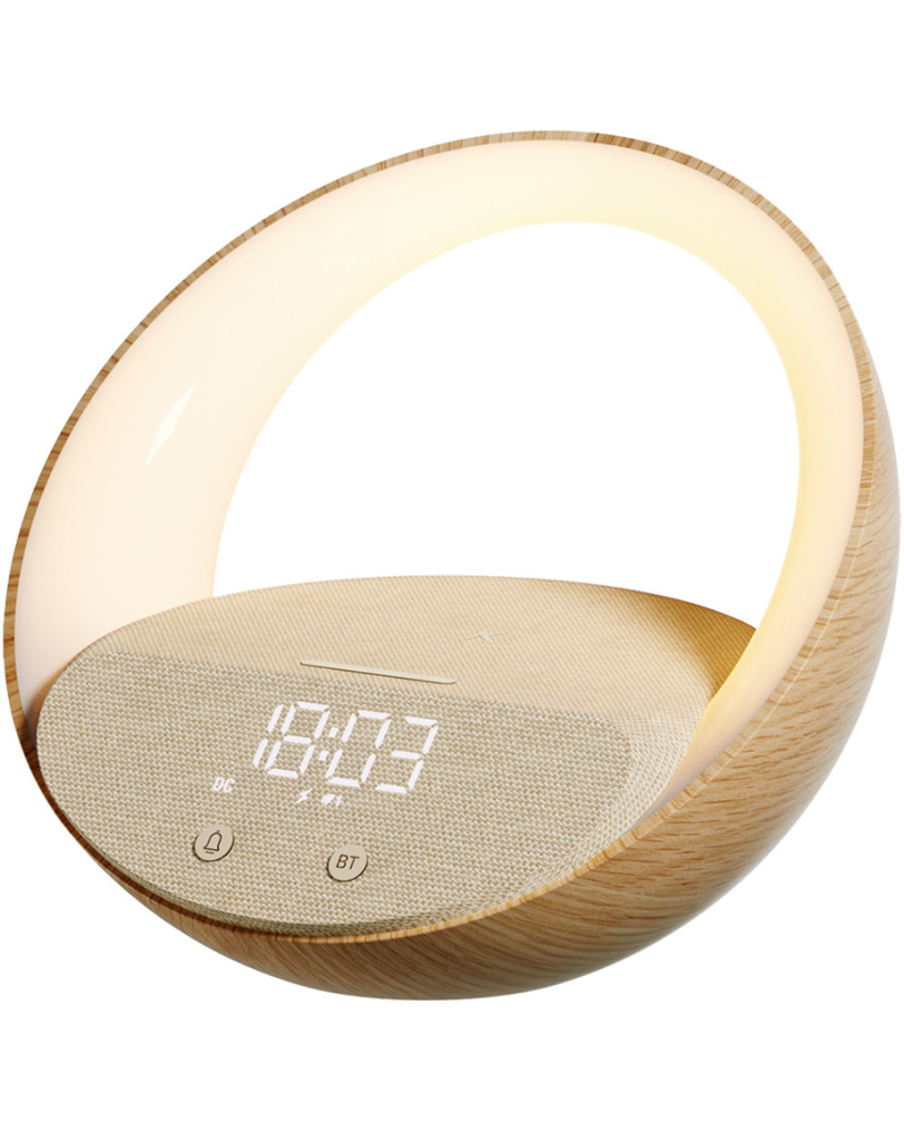 MOYE Aurora Glow je hibridna naprava, ki združuje nočno lučko, budilko, Bluetooth zvočnik in brezžični polnilnik. Že ob odprtju embalaže preseneti elegantna oblika v imitaciji lesa, ki deluje presenetljivo premium in se lepo poda v vsako spalnico ali igralni kotiček. Ni plastična igrača, ampak resen kos opreme. Združljiva je s širokim naborom naprav: pametni telefoni (iOS in Android), tablice, PC in celo Nintendo Switch ter Switch 2 (za zvok). Glavni adut? Zmanjšanje števila kablov na vaši mizi, saj ena naprava opravlja delo treh.