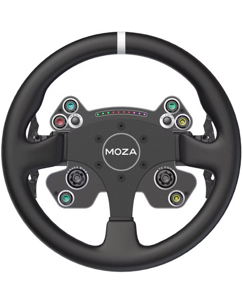 Moza CS V2P je 13-palčni volanski obroč, zasnovan izključno za osebne računalnike. Njegov namen je ponuditi vrhunsko izkušnjo v navezi z vsemi Moza bazami, kot so R5, R9, R12, R16 in R21. Že sama škatla, ki so mi jo podali v Konzolku, je dala vedeti, da v rokah ne držim igrače. Ko sem volan vzel iz embalaže, me je presenetila njegova teža in hladnost letalskega aluminija, iz katerega je izdelan skoraj celoten okvir. Obod, oblečen v mikrovlakneno usnje, ponuja izjemen oprijem, prestavni ročici iz kovanih ogljikovih vlaken pa obljubljata bliskovito in odzivno prestavljanje. Prvi vtis je bil enostavno – premium.