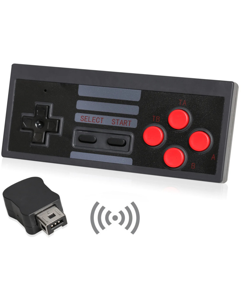 Kontroler se povezuje prek priloženega 2.4GHz brezžičnega sprejemnika, kar zagotavlja stabilno in hitro povezavo z vašo Nintendo Mini Classic NES konzolo. Namestitev je preprosta – le priključite sprejemnik v konzolo, vstavite dve AAA bateriji (nista priloženi) v kontroler, in pripravljeni ste na igranje.