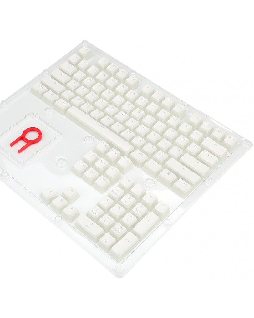 Redragon A130 Scarab je komplet 104 pokrovčkov za tipke, namenjen preobrazbi vaše mehanske tipkovnice. Gre za tako imenovane pudding pokrovčke, kar pomeni, da je zgornji del bel in neprosojen, medtem ko so stranice mlečno prosojne. To ustvari izjemen učinek, saj se RGB osvetlitev vaše tipkovnice ne le sveti skozi črke, ampak se razlije po celotni površini med tipkami. Izdelani so iz trpežne PBT plastike z metodo dvojnega brizganja, kar zagotavlja, da se znaki nikoli ne bodo obrabili. V paketu poleg pokrovčkov dobimo tudi priročno orodje za njihovo odstranjevanje.