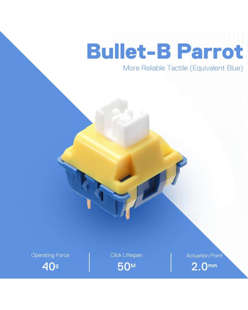 Vsako stikalo je zasnovano za življenjsko dobo do 50 milijonov klikov, kar zagotavlja dolgoletno zanesljivo uporabo. Ohišje stikal je prosojno, kar omogoča lepo razpršitev svetlobe, če ima vaša tipkovnica RGB osvetlitev. Z oceno odpornosti na prah IP40 so stikala tudi dobro zaščitena pred manjšimi delci, kar prispeva k njihovi vzdržljivosti. V paketu je 24 stikal, kar je dovolj za zamenjavo ključnih igričarskih tipk ali celotnega alfanumeričnega dela na manjših, 60% tipkovnicah.