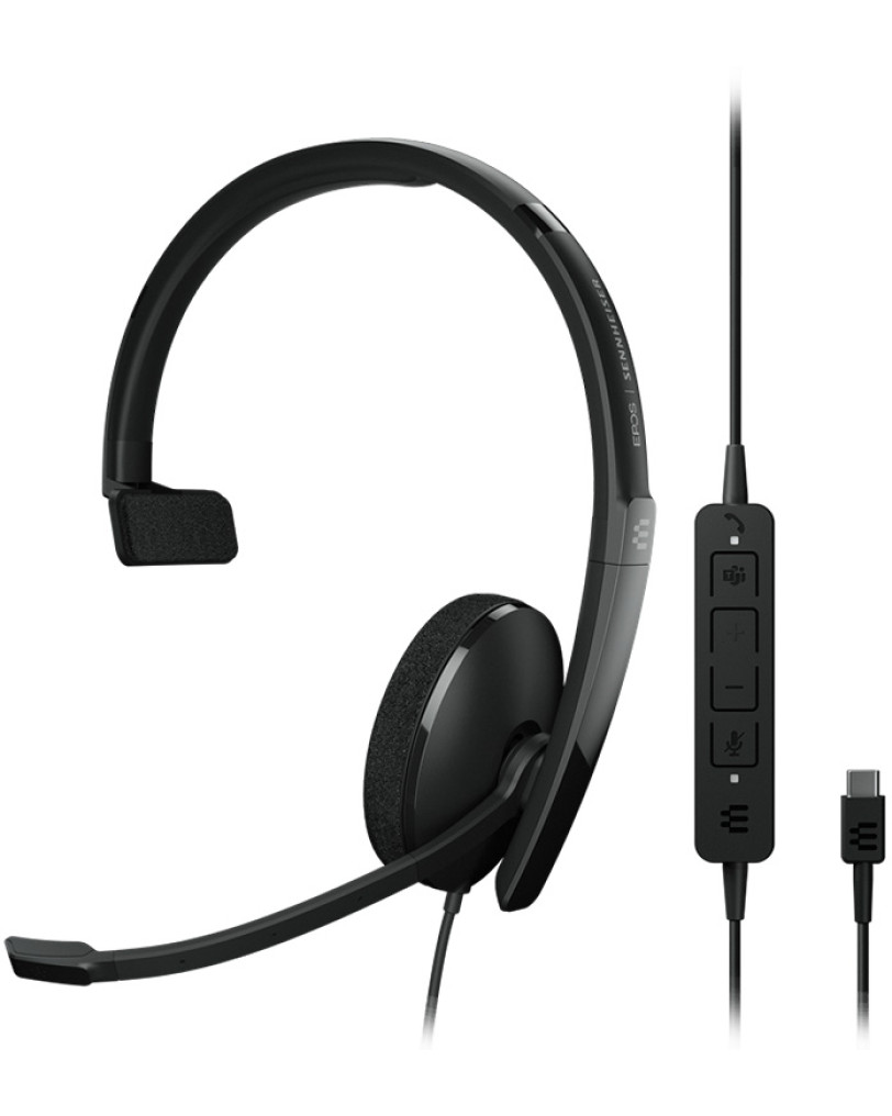 EPOS Adapt 130T USB-C II je žična enostranska (mono) slušalka, zasnovana za tiste, ki želijo ostati povezani z okolico. Že ob odpiranju škatle opazite minimalističen, profesionalen dizajn. Črna mat plastika deluje robustno, a elegantno. Glavna zvezda je diskretna ročica mikrofona, ki se lepo pospravi ob naglavni trak, ko je ne potrebujete. Ker gre za T model, je optimizirana za Microsoft Teams, kar izdaja namenski gumb na kontrolni ploščici. Priklop je sodoben USB-C, kar pomeni, da smo končno v letu 2026 in ne potrebujemo več nerodnih adapterjev za novejše naprave.