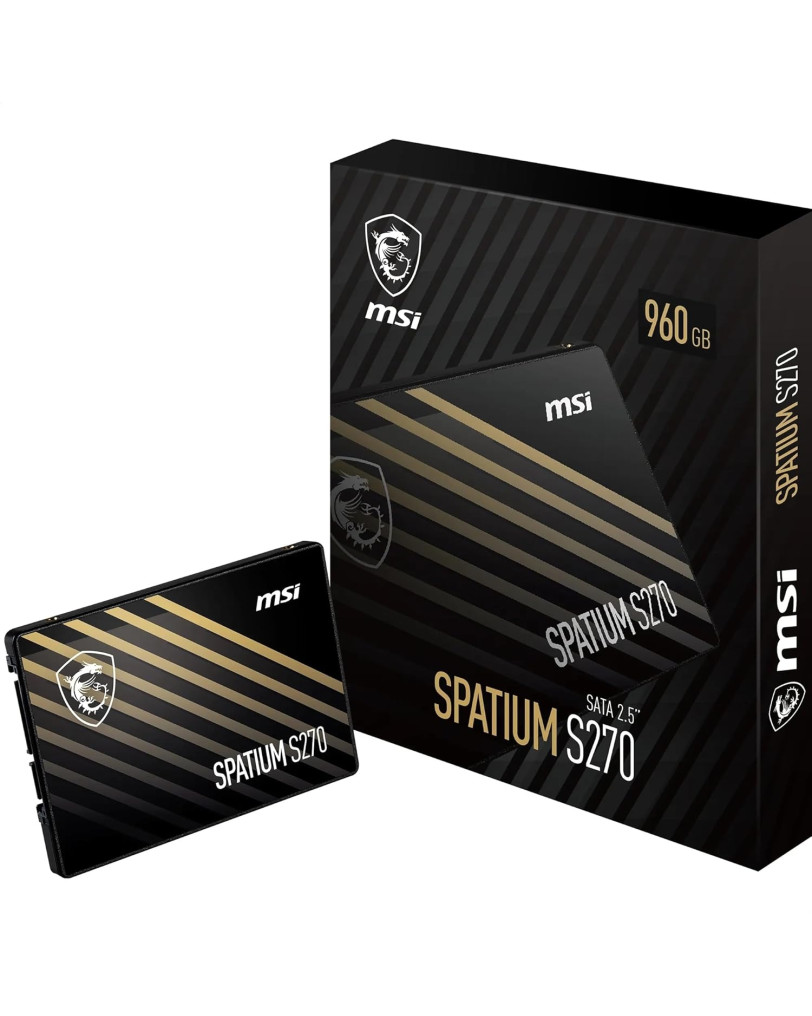 MSI Spatium S270 je 2,5-palčni SATA SSD disk, namenjen predvsem oživitvi starejših sistemov. S kapaciteto 960 GB ponuja ogromno prostora za igre in aplikacije. Namenjen je uporabi v osebnih računalnikih ter konzolah PlayStation 4 in PlayStation 3. Ko sem odprl preprosto, a elegantno embalažo, me je pričakal lahek in tanek disk. Na prvi pogled deluje kot vsak drug SSD, a njegova prava vrednost se skriva v notranjosti. Obljublja hitrosti branja do 500 MB/s in pisanja do 450 MB/s, kar je ogromen preskok v primerjavi s klasičnimi trdimi diski v konzolah.