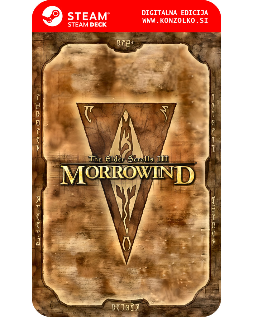 The Elder Scrolls III: Morrowind je fantazijska igra vlog z odprtim svetom, ki te postavi v vlogo neznanega zapornika, poslanega na eksotični otok Vvardenfell. Tam te čaka usoda, ki jo moraš odkriti sam. Igra je znana po svoji neprimerljivi svobodi. Lahko slediš glavni zgodbi in postaneš rešitelj dežele ali pa vse skupaj ignoriraš in se odpraviš raziskovat starodavne ruševine, se pridružiš enemu od številnih cehov ali pa preprosto postaneš tat, ki prazni žepe nič hudega slutečih prebivalcev. Gre za predhodnika bolj znanih iger, kot sta Oblivion in Skyrim, a ponuja veliko bolj kompleksen in globok svet. Za razvojem stoji legendarni studio Bethesda Game Studios, ki je s to igro postavil temelje za vse prihodnje igre v seriji.