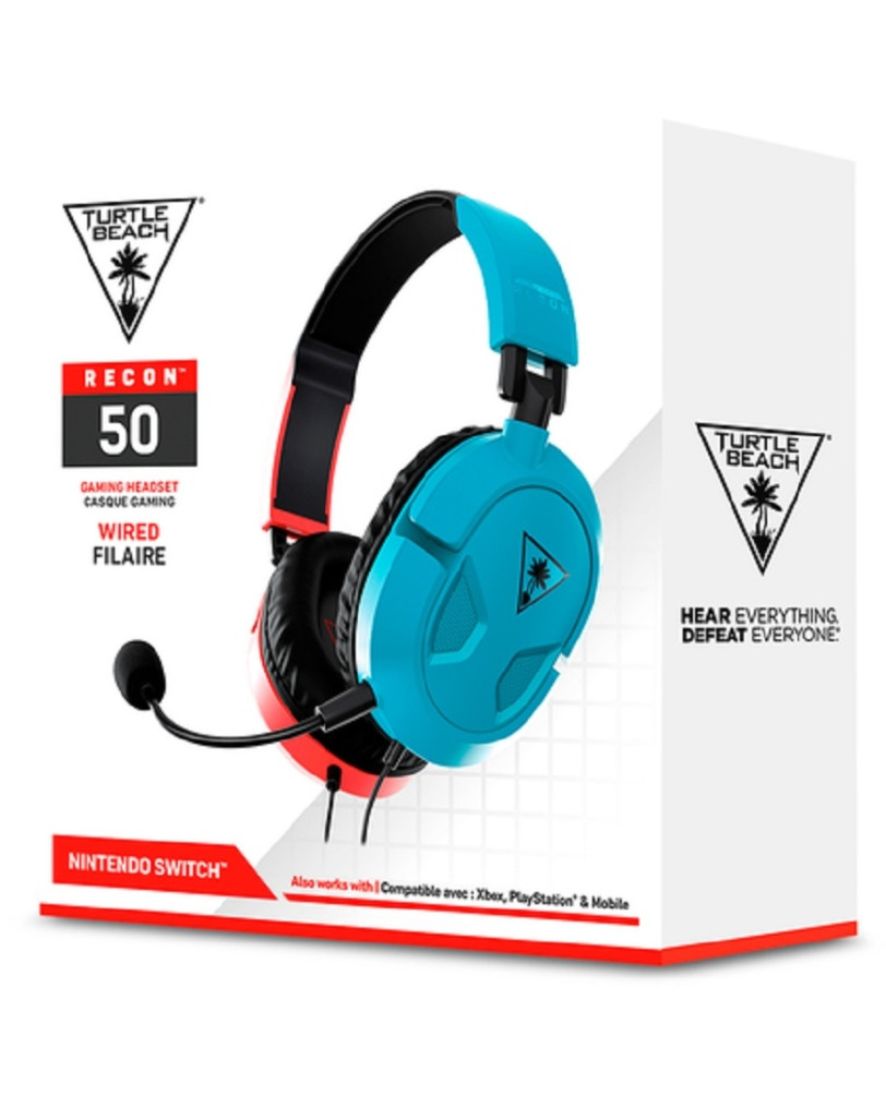 Slušalke Turtle Beach Recon 50 so žični model, namenjen igralcem, ki iščejo cenovno ugodno, a zanesljivo avdio rešitev. Ta rdeče-modra različica je sicer stilsko usklajena z Nintendo Switch, a ne pustite se zmotiti – gre za univerzalno napravo. Združljive so praktično z vsem: osebnim računalnikom, konzolami PlayStation 4, PlayStation 5, Xbox One, Xbox Series X in S, Nintendo Switch, Nintendo Switch 2 ter mobilnimi napravami. Vse, kar potrebujete, je klasičen 3,5 mm priključek. Že ob odpiranju škatle me je presenetila njihova lahkotnost. Plastika deluje nekoliko osnovno, a hkrati dovolj prožno, da ne daje občutka, da bo takoj počila. V paketu je poleg slušalk še snemljiv mikrofon, kar je odličen dodatek.