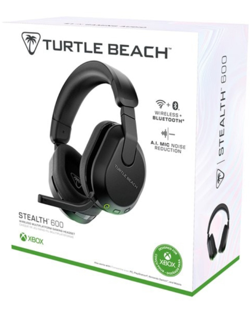 Slušalke Turtle Beach Stealth 600 Gen 2 so brezžične igralne slušalke, uradno licencirane za konzole Xbox Series X, Xbox Series S in Xbox One. Že ob odpiranju embalaže je jasno, da gre za izdelek, ki stavi na preprostost in funkcionalnost. V škatli poleg slušalk najdemo le polnilni kabel USB-C in kratka navodila. Prvi vtis je presenetljivo dober; plastika je trdna, ojačana z notranjim kovinskim trakom, ušesne blazinice iz spominske pene, prekrite z zračno tkanino, pa delujejo zelo udobno. Vse skupaj je oblikovano v prepoznavni črni barvi z zelenimi poudarki, ki se lepo podajo k Xboxu.